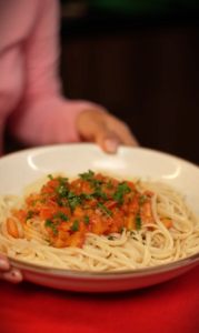 Pasta cremosa de camarones con espinaca